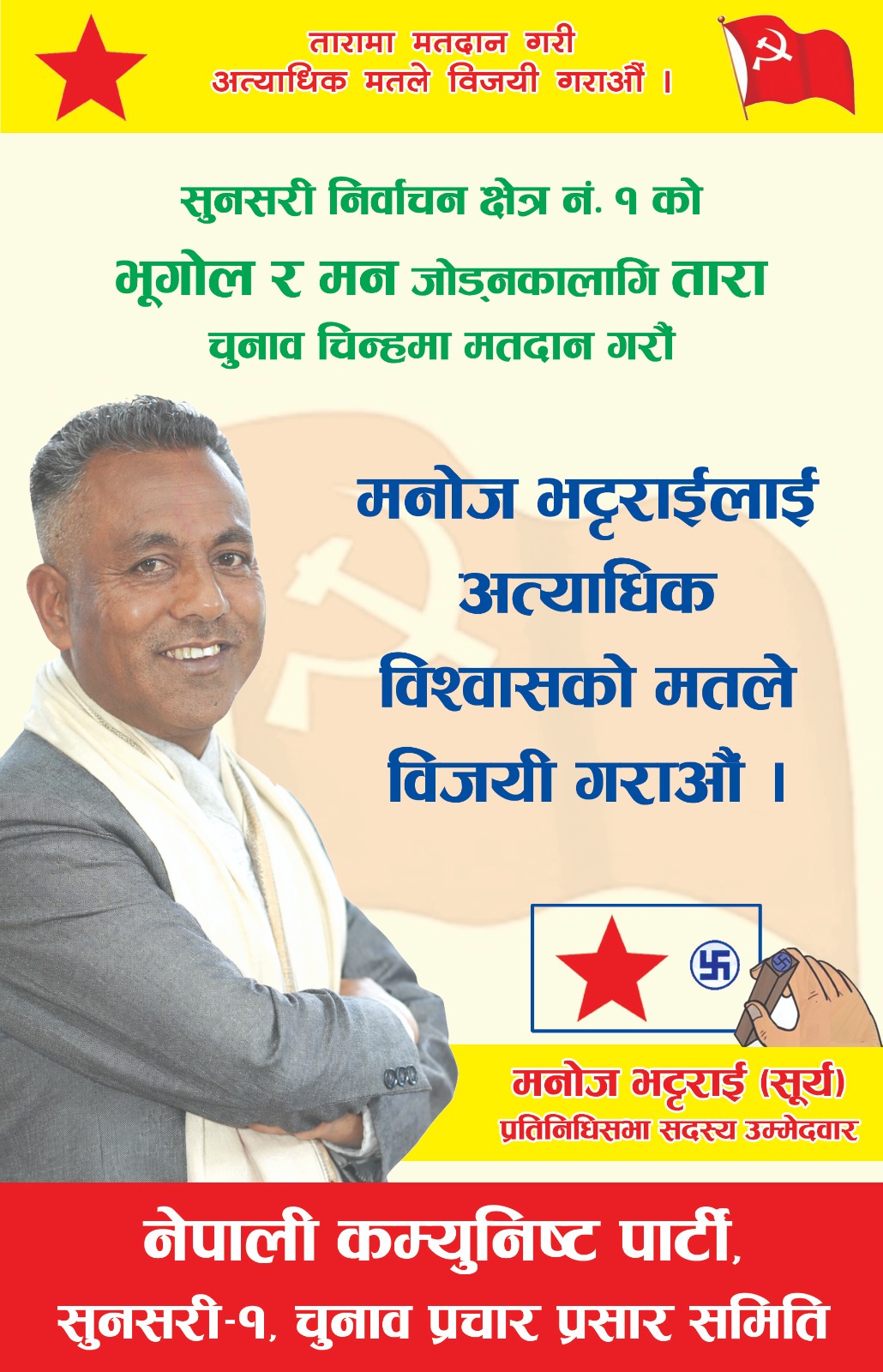 Read moreनेपाली कम्युनिष्ट पार्टीको तर्पmबाट,सुनसरी क्षेत्र नम्वर १ प्रतिनिधि सभा सदस्य उम्मेदवार मनोज भट्टराई, सधै एउटै कुरा दोहो¥याउछन, कि म रैथाने...